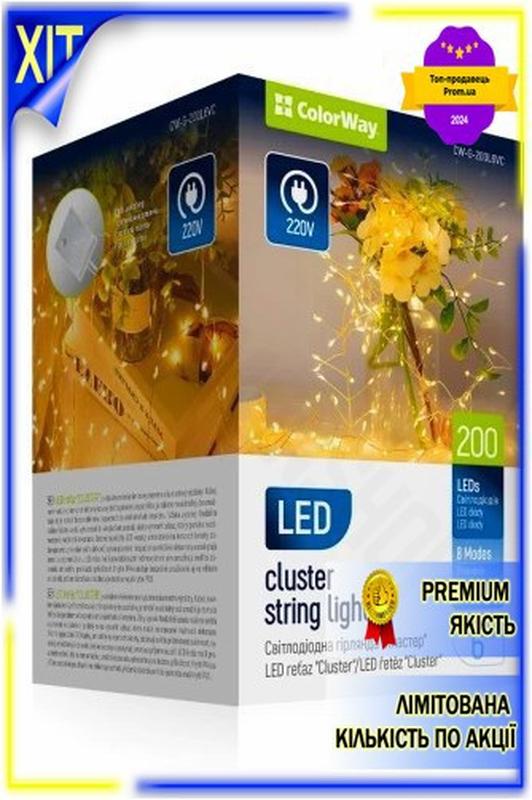 Dm гірлянда світлодіодна colorway специфікація 2.2 200 led теплий білий 6 м для декору свя...