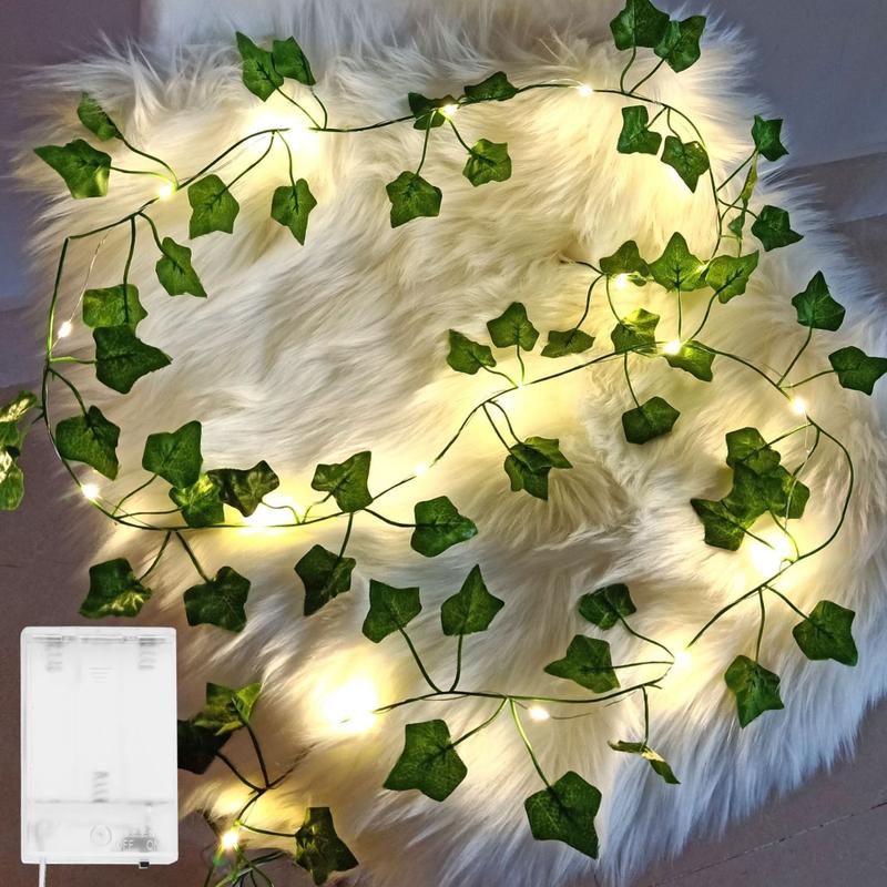 Гирлянда листья плюща на батарейках 2м, теплый белый