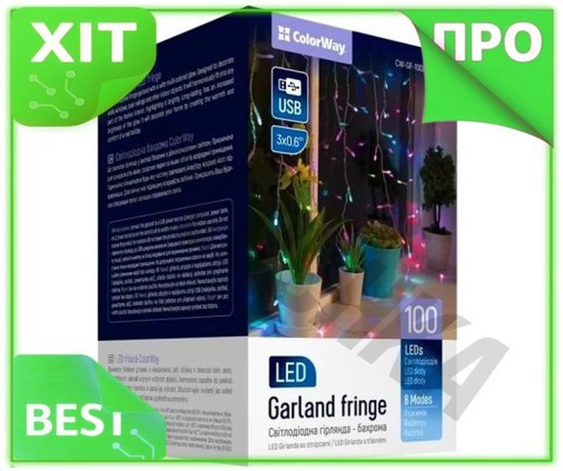 Ve світлодіодна гірлянда colorway бахрома new version 100 led rgb різнокольорова для декор...