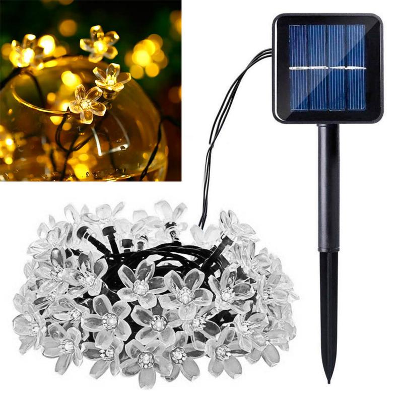 Вулична гірлянда на сонячній батареї 5м, квітка, тепла біла