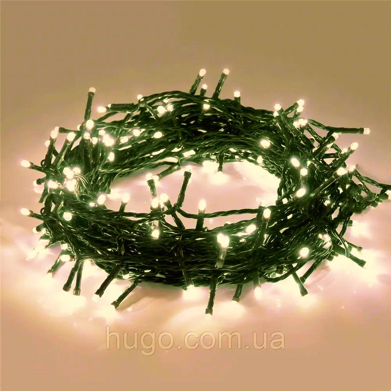 Гірлянда 40 м "нить" на зеленому дроті 600 led теплий білий