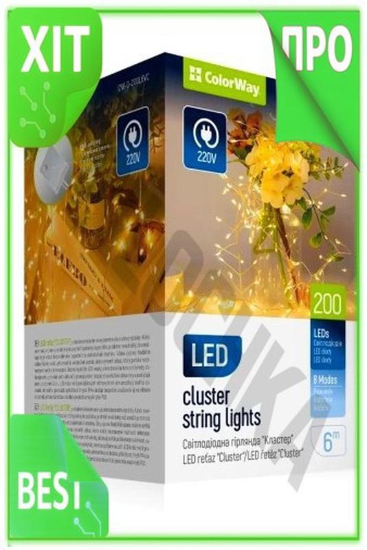 Ve гірлянда світлодіодна colorway 200 new version led теплий білий 6 м для декору свят вну...