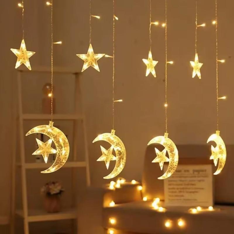 Гірлянда (штора) moon-star (4m*0,4m) теплий від 220v з конектором (зірки та місяць)