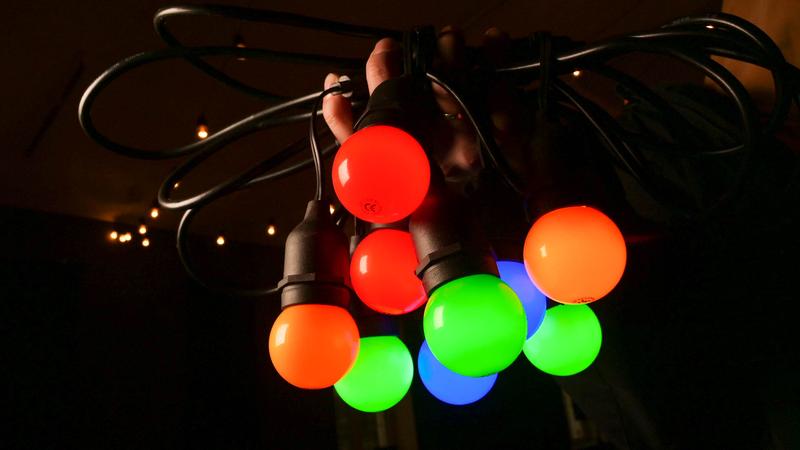 15 метрів вулична ретро гірлянда старк з 30 звисаючими різнокольоровими led лампами 1.2 вт