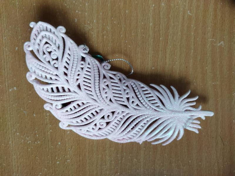 Новорічний декор пір’їна гліттер рожеве 1 шт