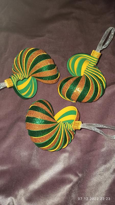 1056 Игрушка новогодняя на елку в виде ракушки. Материал фоамиран, легкий и мягкий. Не будет отягощать елку, яркие цвета будут радовать в зимние дни. Безопасны для деток и не разобьют домашние котики). Высота 10см. Подойдет для высокой елки. В наличии 6 шт Цена 45 грн за 1 шт