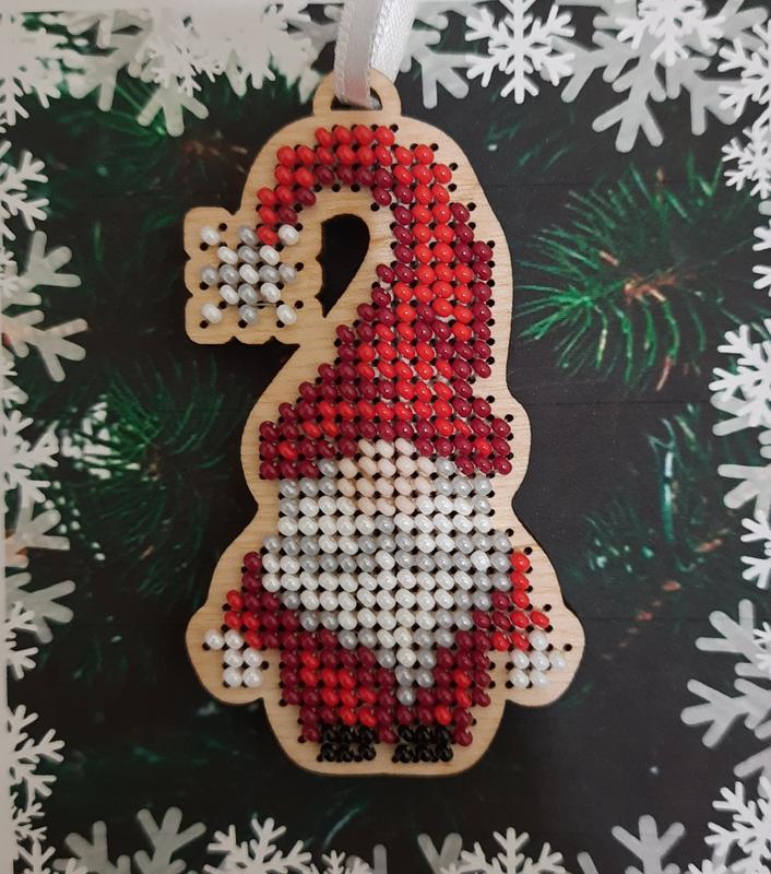 Новорічна прикраса на ялинку вишита бісером "гном"