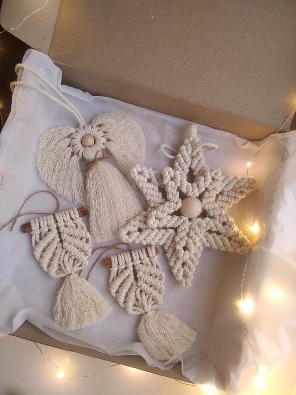 Час створювати новорічний настрій з Love macrame 🧡 Різдвяна коробочка ✨💫 може прикрасити Вашу ялинку або ж буде незабутнім та приємним подарунком близьким. Іграшки ручної роботи, виконані з натуральних матеріалів: 🔸бавовни та дерева. Ці іграшки попіклуються про теплу, затишну, чарівну атмосферу у вашій оселі на новорічні свята 💫 Наша майстерня про індивідуальний підхід, разом ми можемо обрати колір для вашої іграшки та обрати наповнення вашої коробочки Зроблено з любов'ю ✨ Додаткові характеристики: Матеріал: Дерево Матеріал: Нитки