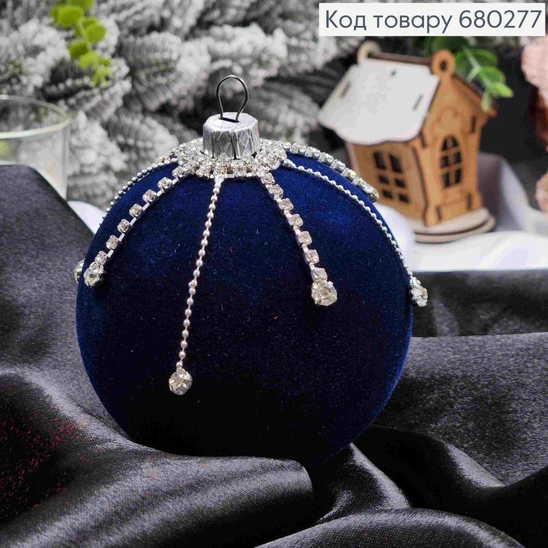 Іграшка куля на ялинку(1шт) 80мм "оксамит+цепочка" синій колір, новорічна прикраса пластик...