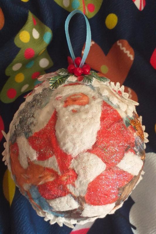 Ця унікальна святкова кулька створена з любов’ю та увагою до кожної деталі. Виготовлена вручну, вона прикрасить Вашу ялинку або стане чудовим подарунком для близьких. Кожен орнамент ретельно продуманий, що надає їй неповторного шарму. Вона поєднує в собі традиції та сучасний стиль, додаючи Вашому святковому декору тепла та казковості. Стане чудовим доповненням до святкової атмосфери вашої оселі! Розміри: діаметр 35 см./ вага 40 гр./ петля 4 см. Матеріали: папьє-маше, мереживо, блискітки, бісер, стрічка.