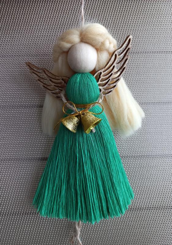Янгол макраме різдвяний прикраса на ялинку. Розмір 16-18см. виконаний в техніці макраме