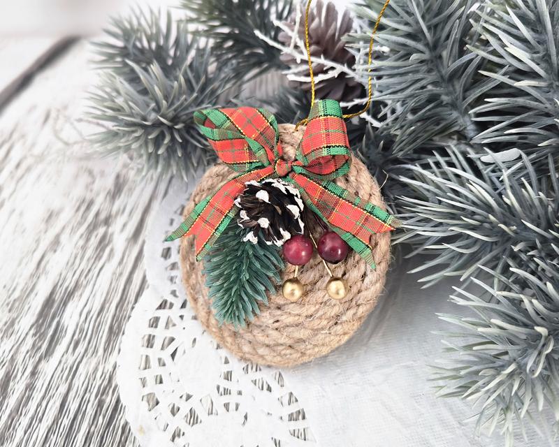 Всі мріють оригінально прикрасити свій будинок до Нового року і зробити його особливим. Радянські ялинкові кулі і різнобарвну мішуру давно хочеться замінити на щось нове. Новорічні іграшки, зроблені з шишок – традиційний святковий декор, який актуальний протягом кількох століть. Композиції з ялинових шишок неодмінно змінять вашу новорічну ялинку. Покриті золотом, розмальовані фарбами, посипані блискітками, декоровані стрічками, сплетені в розкішний вінок, плоди хвойних дерев і сьогодні дуже гармонійно вписуються в новорічний ансамбль. Еко-іграшки - це оригінально, красиво, а головне, безпечно (особливо, якщо в домі є маленька дитина). Вони гармонійно виглядають не тільки на ялинці, але й в інтер'єрі. Натуральні Іграшка на ялинку в еко-стилі "Шарик" В роботі викорастані : декоративні ягідки, стрічка із тканини "шотландка", шпагат льняний, шишки соснові, декоративна гілочка ялинки, шнурок для підвіски люрекс. Висота іграшки 8,5 см, ширина 8 см