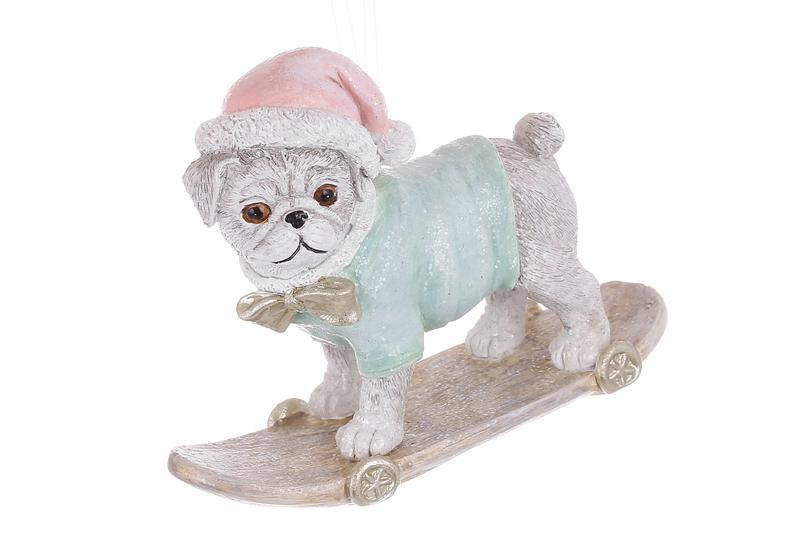 Елочная подвеска мопсик на скейте,12*9,5 см