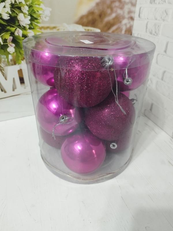 Набір новорічних куль на ялинку gm9008-4 пластикових 8 см 12 шт рожевий