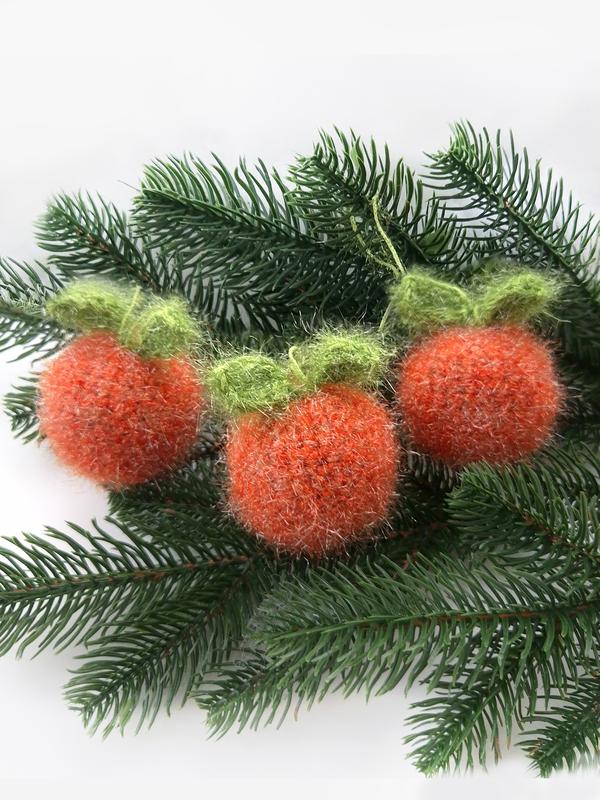 Набір (3 шт.) м'яких мандаринок на ялинку, ялинкові іграшки ручної роботи