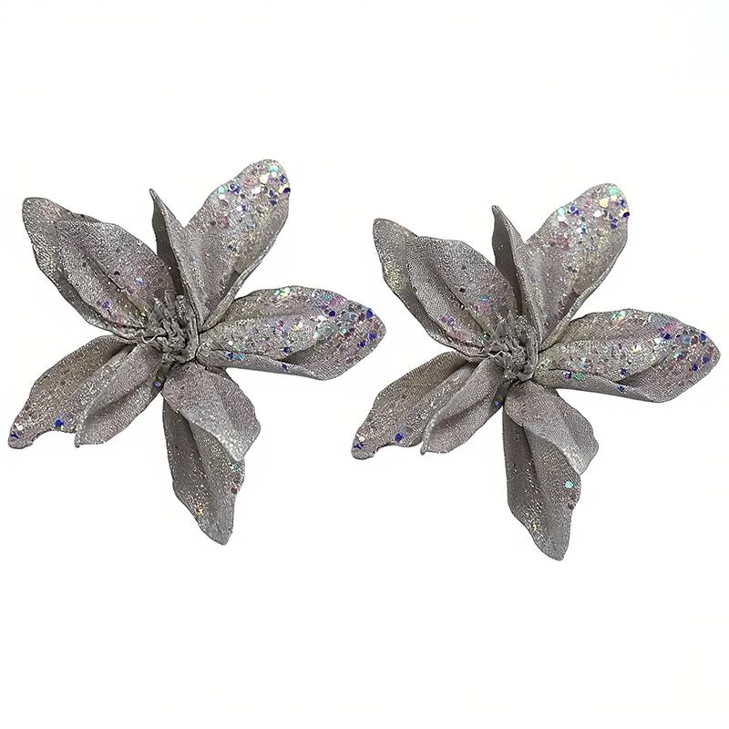 Декоративна квітка лілії з екошкіри - ефектний елемент новорічного та святкового декору. Квітка діаметром близько 15 см виконана з густим блискучим покриттям, яке красиво сяє при штучному освітленні. Пелюстки мають м'яку текстуру і легко піддаються формуванню, що дозволяє налаштовувати об'єм та напрямок для створення потрібної композиції. Гнучка основа робить квітку зручною для кріплення до різдвяних вінків, ялинкових гілок, подарункових упаковок, арок та фотозон. Основні характеристики різдвяної квітки на ялинку: Матеріал: екошкіра; Діаметр 15 см; Кількість у наборі: 2 штуки. Лілія ідеально поєднується з хвойними елементами, білими та скляними прикрасами, додаючи композиціям виразності та святкового блиску.