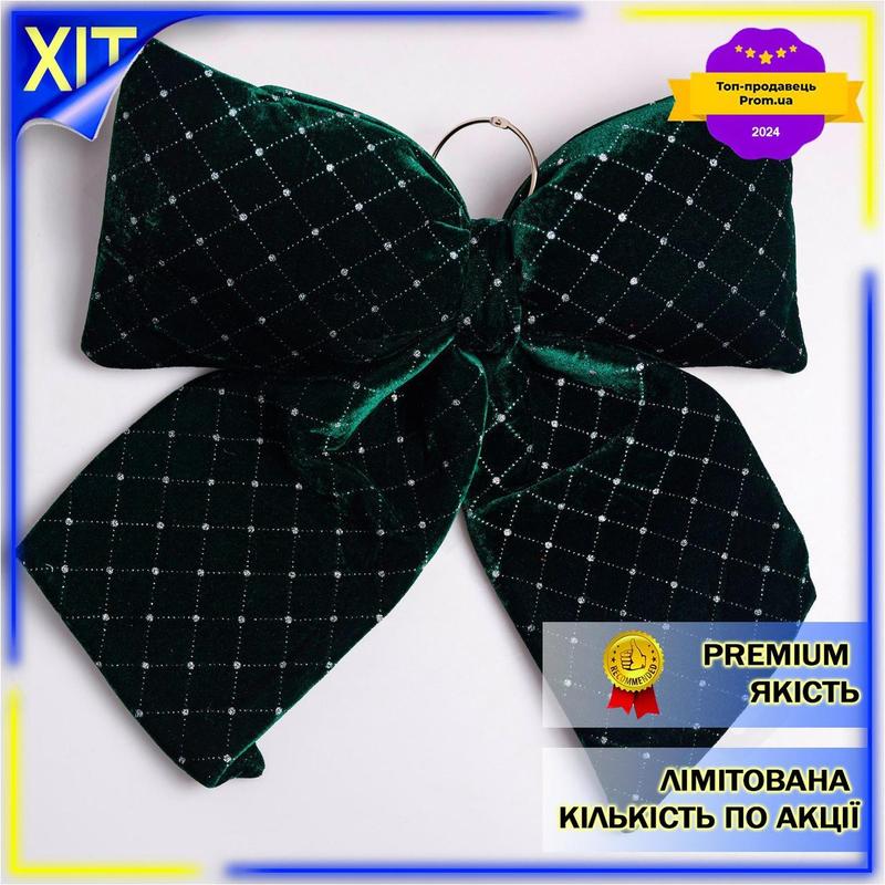 Dm бархатный бант для спецификация 2.2 декора со стразами зеленый 45x50 см для елки торжес...