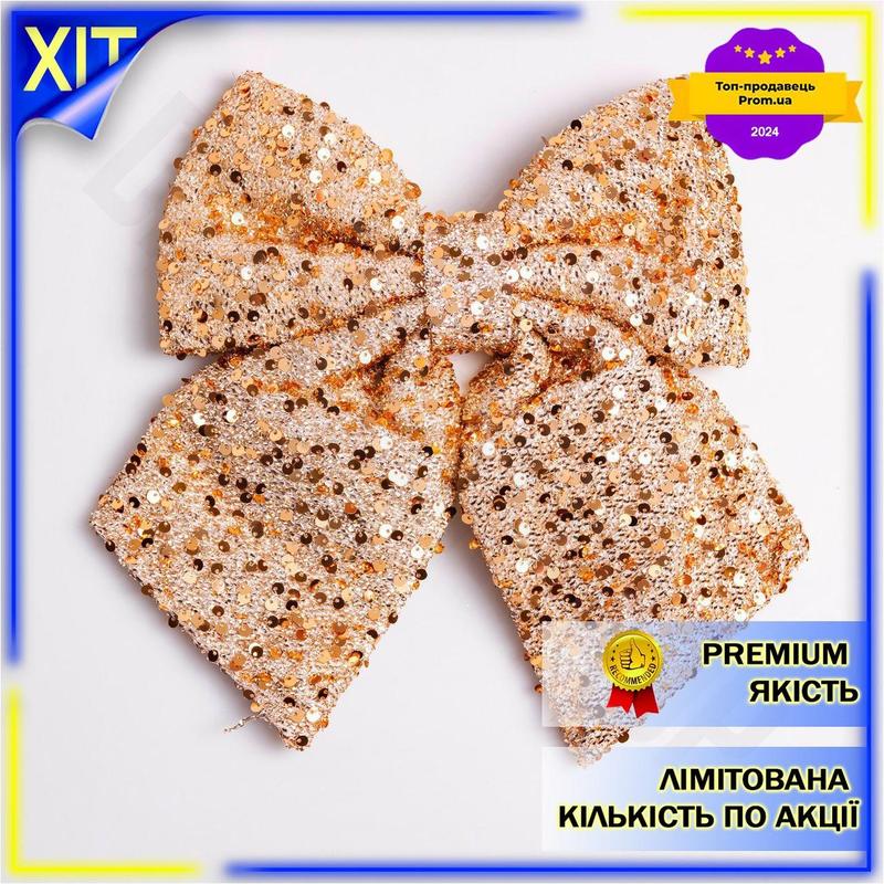 Dm бант новогодний для спецификация 2.2 декора с пайетками золотистый 25х35 см украшение д...