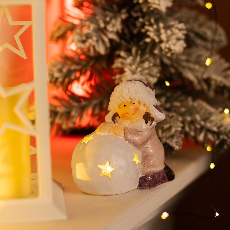 Ця ніжна фігурка миттєво створює атмосферу затишку та тепла у вашому домі. Дівчинка зі сніговою кулею має особливо милий вигляд, а легке «сніжне» напилення додає виробу святкової магії. Особливий шарм фігурки надає ніжне світне світіння, яке м'яко освітлює кімнату, роблячи її ще затишнішою та святковішою. Основні характеристики новорічної фігурки для дому на подарунок: Матеріал: порцеляна; Розмір: 11×7×12 см. Фігурка стане чудовим елементом новорічного оформлення дому, офісу, вітрини магазину або дитячої кімнати, додаючи інтер'єру затишку та святковий настрій.