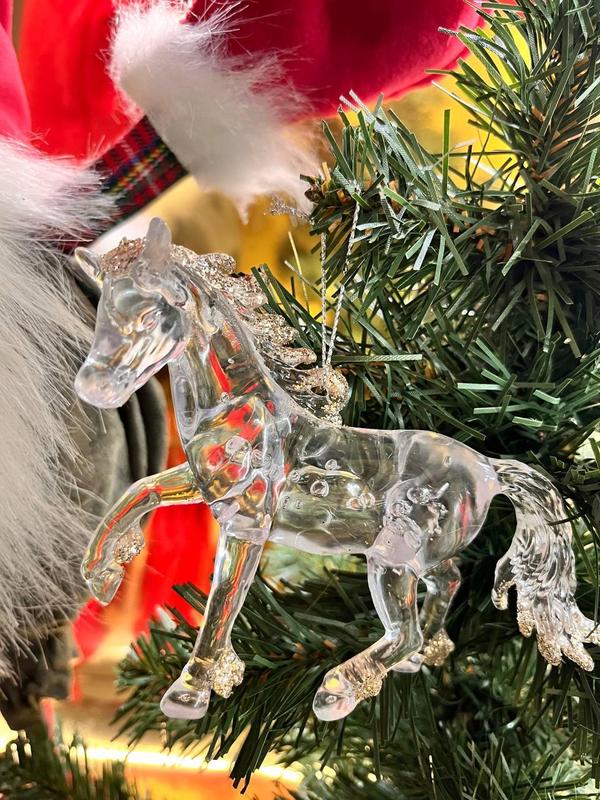 Елегантна новорічна фігурка "кінь" — прозорий із білим блиском (13 см)