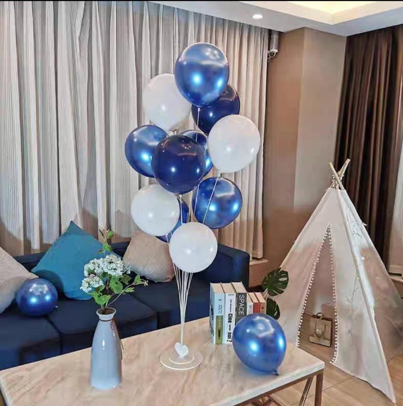 Набір повітряних кульок на стійці для повітряних кульок У набір входить: Стійка для повітряних кульок на 11 кульок - 1 шт Латексна повітряна куля темно 25 см - 4 шт Латексна повітряна куля синя хром 25 см - 5 шт Латексна повітряна куля біла 25 см - 4 шт