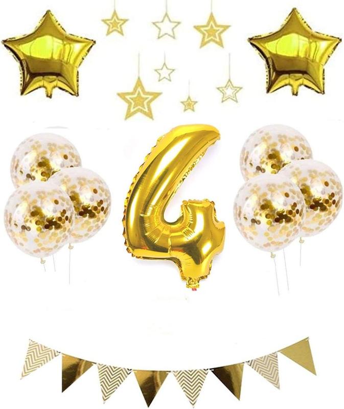 Набір повітряних кульок Золоті зорі У набір входить: Паперова гірлянда золоті трикутники - 1 шт Фольгована фігура Цифра золото (на ваш вибір) 80 см - 1 шт Латексна повітряна куля із золотим конфеті 25 см - 6 шт Фольгована фігура Зірка золото 45 см × 45 см - 2 шт Клейові точки 100 шт