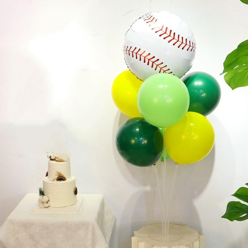 Набір повітряних кульок на стійці для повітряних кульок У набір входить: Фольгована фігура Бейсбольний м'яч 44 см × 44 см - 1 шт Латексна повітряна куля салатова 25 см - 2 шт Латексна повітряна куля зелена 25 см - 2 шт Латексна повітряна куля жовта 25 см - 2 шт Стійка для повітряних кульок на 7 кульок висотою 70 см - 1 шт