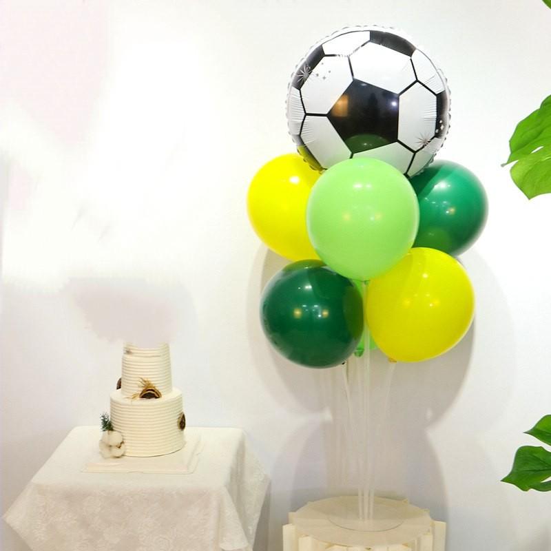 Набір повітряних кульок на стійці для повітряних кульок У набір входить: Фольгована фігура Футбольний м'яч 44 см × 44 см - 1 шт Латексна повітряна куля салатова 25 см - 2 шт Латексна повітряна куля зелена 25 см - 2 шт Латексна повітряна куля жовта 25 см - 2 шт Стійка для повітряних кульок на 7 кульок висотою 70 см - 1 шт