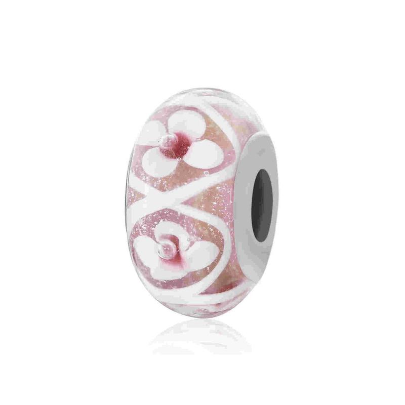 Срібна намистина-шарм квіти з кранським склом