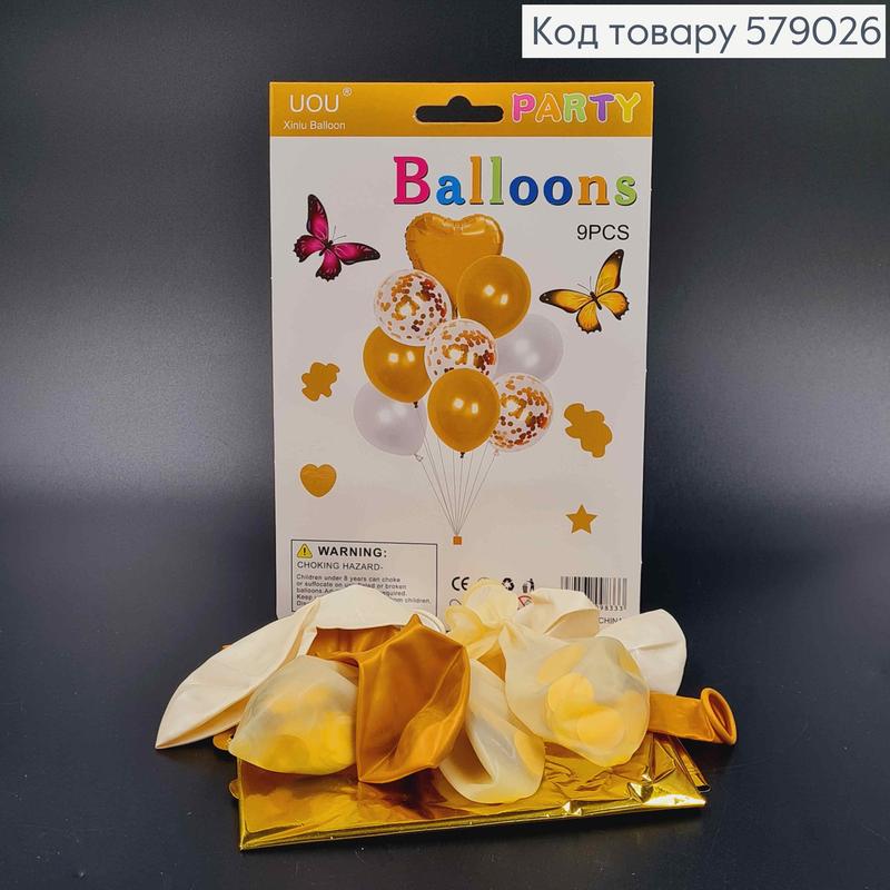 Набір куль золотих, 1шт(фольгована)+8шт(латексні)