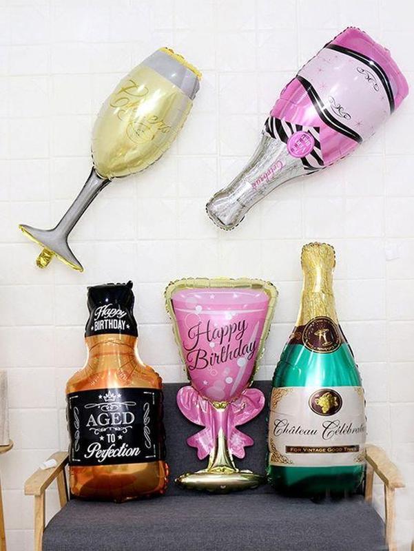 Фольгована куля з клапаном у формі величезної пляшки шампанського. Надувається повітрям за допомогою спеціального насоса або через будь-яку соломинку для коктейля (в комплекті не йде). - Розмір: 93 на 48 сантиметрів - Колір: рожева або зелена пляшка шампанського або пляшка Віскі Пляшка Віскі має розмір 75 на 48 сантиметрів Підійде для оформлення святкового заходу. Прекрасний декор для будь-якого дня народження, дівич-вечора і весілля.