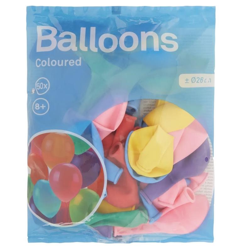 Повітряні кулі 26 см 50 шт В упаковці різні кольори Дуже великі повітряні кулі, приблизно 26 см За допомогою пакета з великими повітряними кульками різних кольорів ви зможете швидко прикрасити будь-яку кімнату перед вечіркою