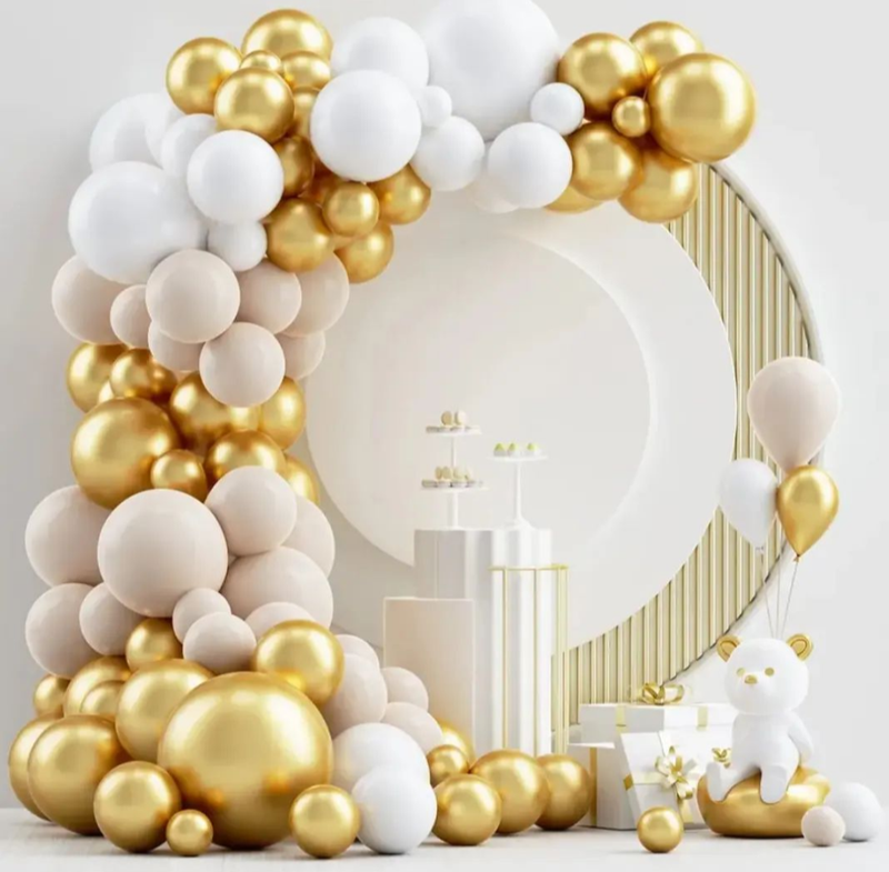 1 шт кулька хром золото 30 см 1 шт кулька біла 30 см 30 шт кульки хром золото 26 см 10 шт кульки хром золото 13 см 10 шт кульки білі 26 см 20 шт кульки латте 26 см 5 шт кульки білі 13 см 5 шт кульки латте 13 см Пластикова стрічка для швидкого монтажу арки Клейові гель-крапки упаковка 100 шт