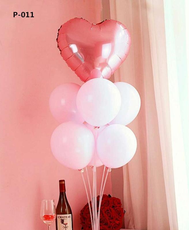 Набір кульок на підставці У набір входить: Підставка на 7 кульок висотою 70 см - 1 шт Фольгована фігура Серце рожеве 45 см - 1 шт Латексна повітряна куля біла 25 см - 7 шт