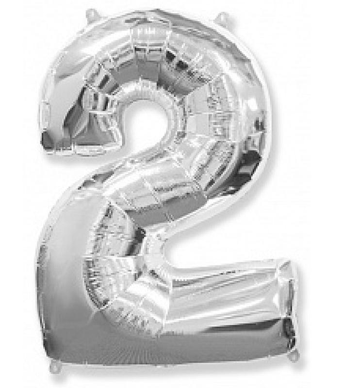 Фольгований куля цифра "2" СЕРЕБРО FLEXMETAL розміром 102 см. Можна надувати повітрям або гелієм.