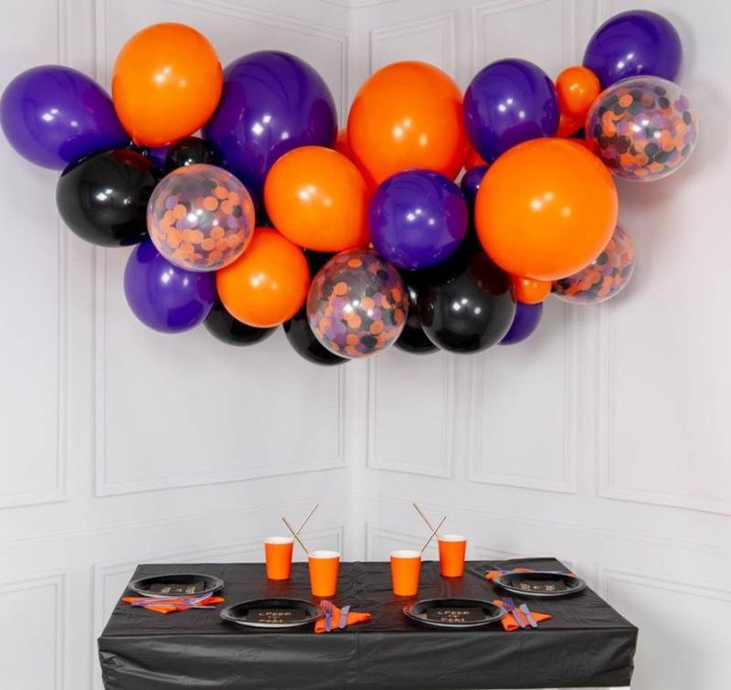 Набор воздушных шаров для создания арки, не требует использования гелия! Комплектация: - Латексные шарики 48 см 2 шт (1 шт оранжевый, 1 шт фиолетовый) - Латексные шарики 25 см 25 шт (10 шт оранжевый пастель, 5 шт черный пастель, 10 шт фиолетовый пастель) - Латексные шарики 25 см 5 шт прозрачный + 10 грамм конфетти оранжевые, 5 грамм черные, 5 грамм фиолетовые (кружочки 23 мм) - Латексные шарики 13 см 30 шт (10шт оранжевый пастель, 10 шт черный пастель, 10 шт фиолетовый пастель) - Клеевые точки (упаковка на 80 шт) - Лента пластиковая для арки (5 метров) Любой цвет шаров можно заменить на другой, имеющийся в наличии! Пожелания указывайте в комментарии к заказу!