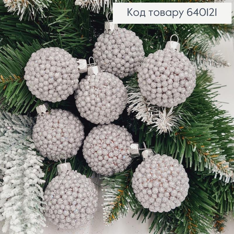 Набор шаров 40мм декор серебро 8шт/уп, новогодние пластиковые украшения.