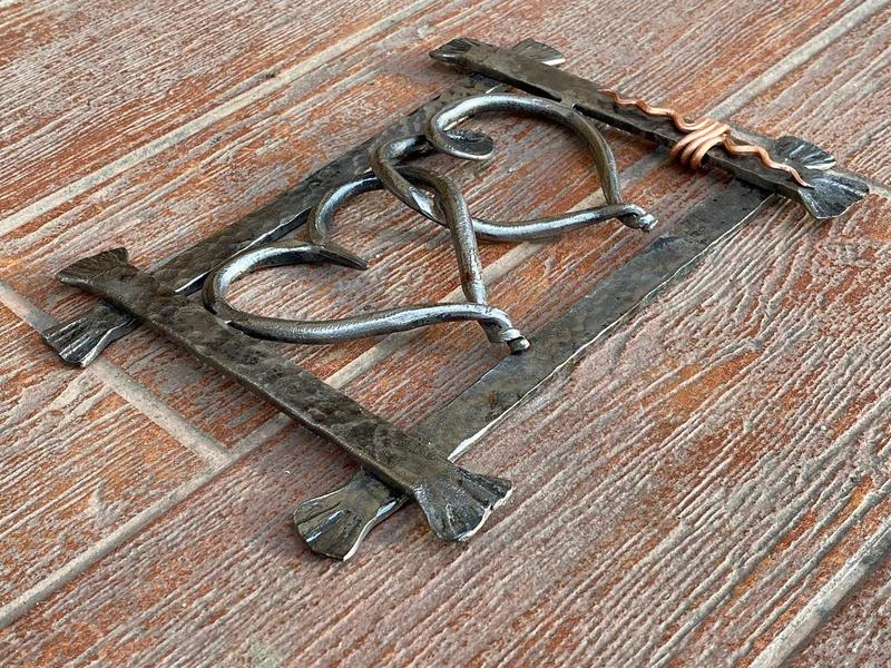 Ось гарний залізний каркас, вибитий вручну із двома переплетеними серцями, з'єднаними одне з одним. Гарний подарунок на 6 річницю весілля (залізну річницю), на заручини, День Святого Валентина та інші події! Розміри: висота: 12 см довжина: 17 см Колір: не фарбований. Він має гарний колір чистого заліза, покритий лаком. Ціна включає гравіювання на рамі. Виготовлено зі 100% заліза. Ручна робота. Гравірування з іменами, датою, коротким повідомленням включено у вартість. Ми поєднуємо традиційні ковальські техніки, удосконалені протягом сотень років експериментів і розробок, із сучасними формами та методами, щоб виробляти чудово чіткі вироби функціонального мистецтва. Кожна деталь кується вручну при надзвичайно високій температурі. Гнучке, коли розжарюється, залізо формує витончені, плавні форми. У нашому світі високих технологій є особливе місце для органічних форм і металевих елементів дизайну, виготовлених вручну. Індивідуальні замовлення вітаються.