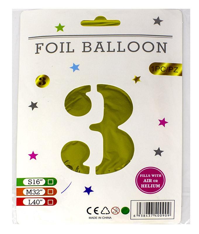 Кулька-цифра золота 3 фольга 86см в інд уп 990973