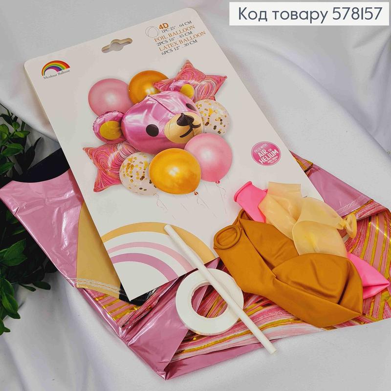 Набір куль рожеве "ведмежа", 1шт(фольга 4d), 2шт(з наповнювачем), 4шт(латексні)