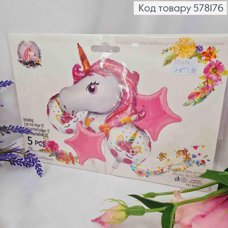 Набір фольгованих куль, "єдиноріг", зірки (2шт), круглі (2шт), єдиноріг (1шт/28'')