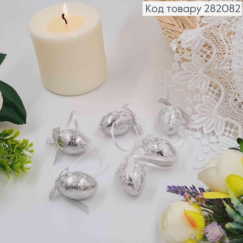 Яйця перепелині, фольговані срібні з бантиком, на петельці, 4*3см, 6шт/уп