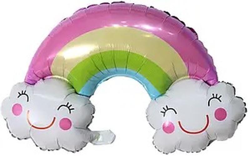 Фольгована кулька (75х55 см) веселка з хмаринками