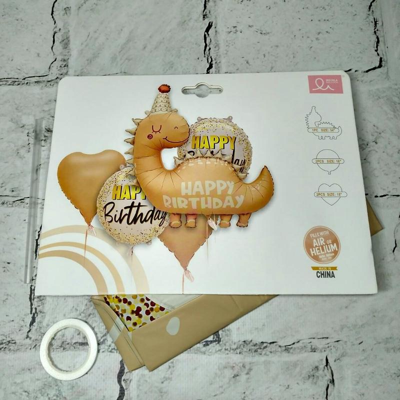 Повітряні кульки фольговані набір динозавр 5 шт бежеві