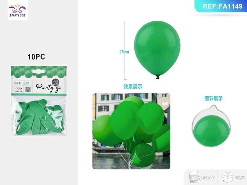 Кулі надувні зелені 10 штук 25 см. святковий декор вечірки, дня народження.