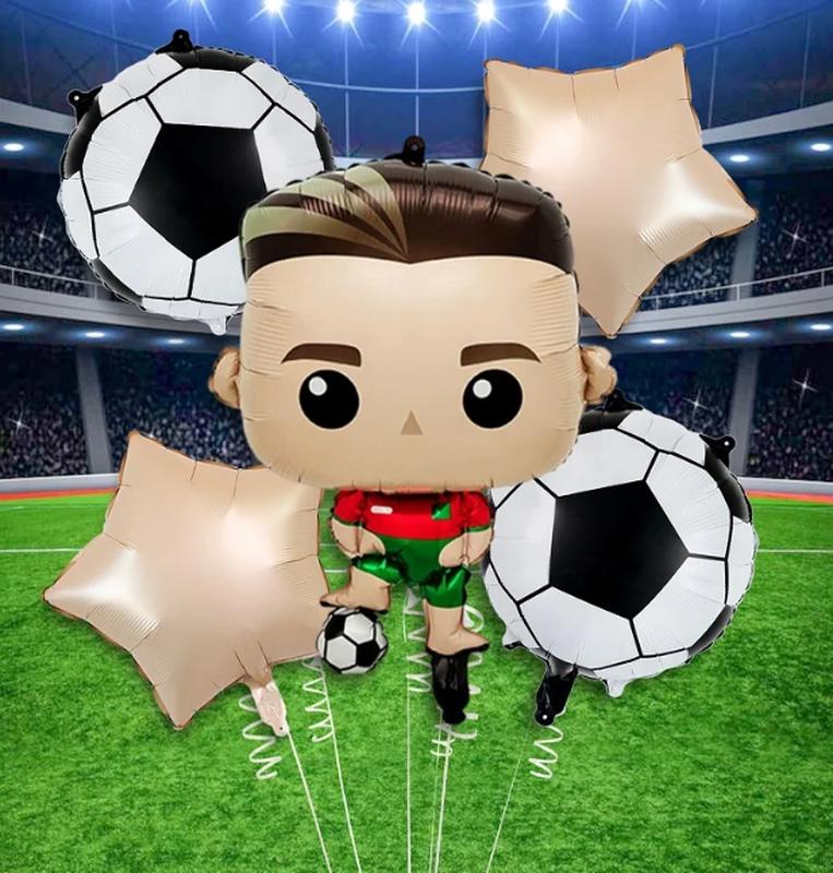 Набір куль для футбольних вечірок з нагоди дня народження з 5 предметів, до якого входять футбольні кулі з алюмінієвої фольги, повітряні кулі з п'ятьма зірками, ідеально підходять для футбольних матчів, прикрас для вечірок з нагоди дня народження, вечірок на футбольній тематиці. Матеріал: алюмінієва фольга Вага: 20 г кожен. Заміри на фото. Постачається у спущеному вигляді.