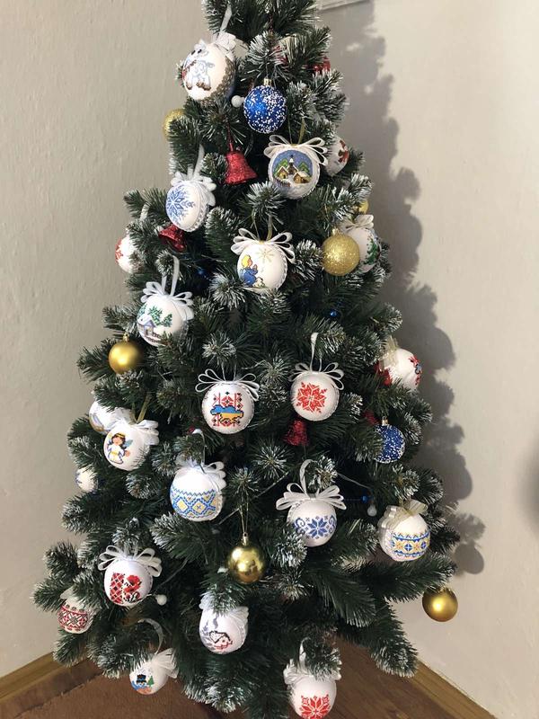 вишиті кульки на ялинку ручної роботи діаметр 6см Ідеальний варіант для невеликих офісних ялинок.