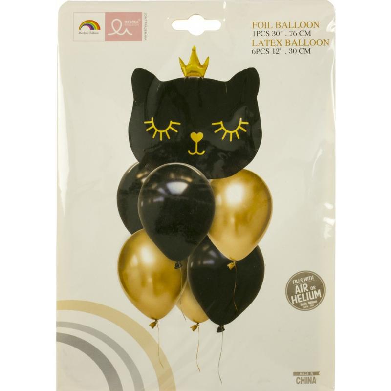 Набір кульок повітр. "Чорна кішка" 7шт чорне золото №F-157(10). Святковий набір повітряних кульок, ідеальний для декорування урочистих заходів.