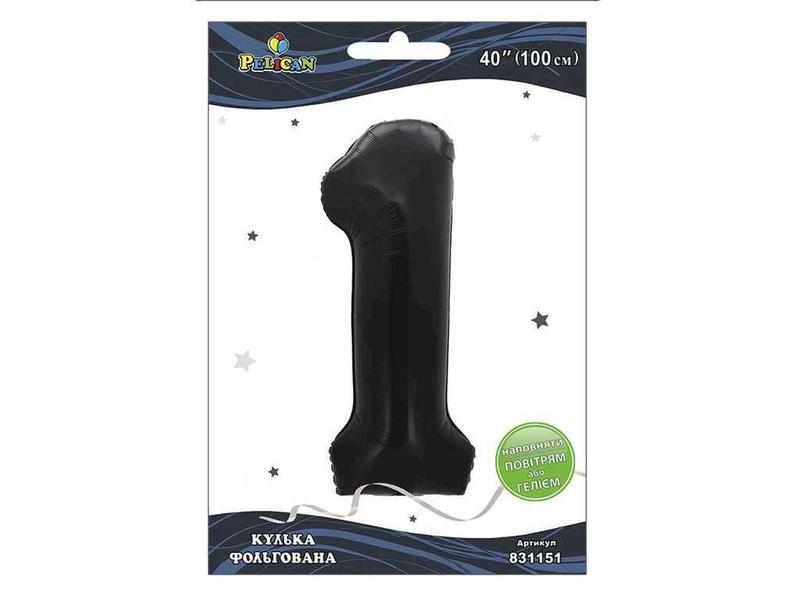 Кулька фольгована цифра 40 (100 см) 1 чорна тм pelican