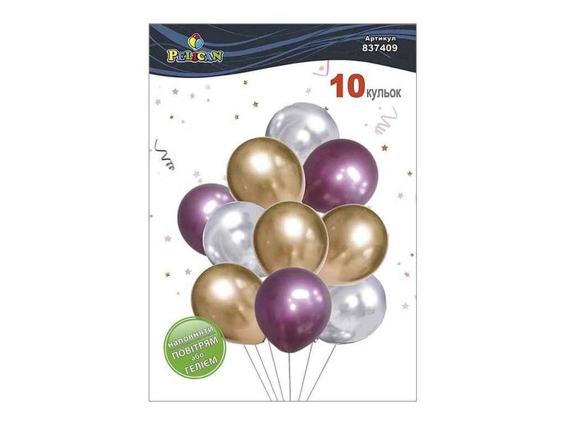 Набір з кульок срібно-рожевий блиск 10шт латекс хром тм pelican
